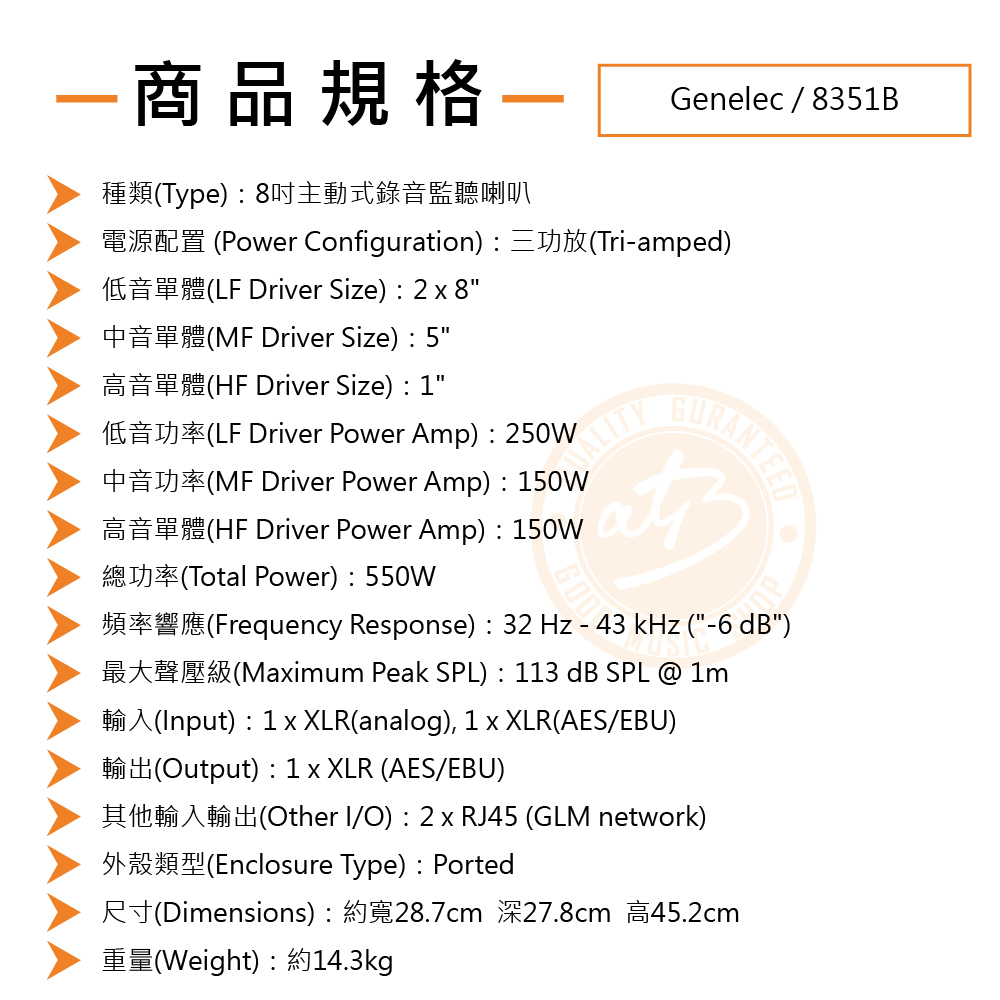 ◆ 芬蘭製造,同軸三分頻監聽喇叭