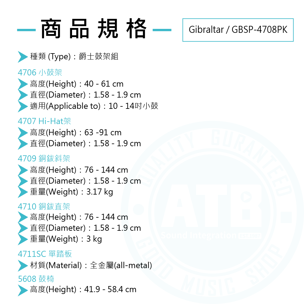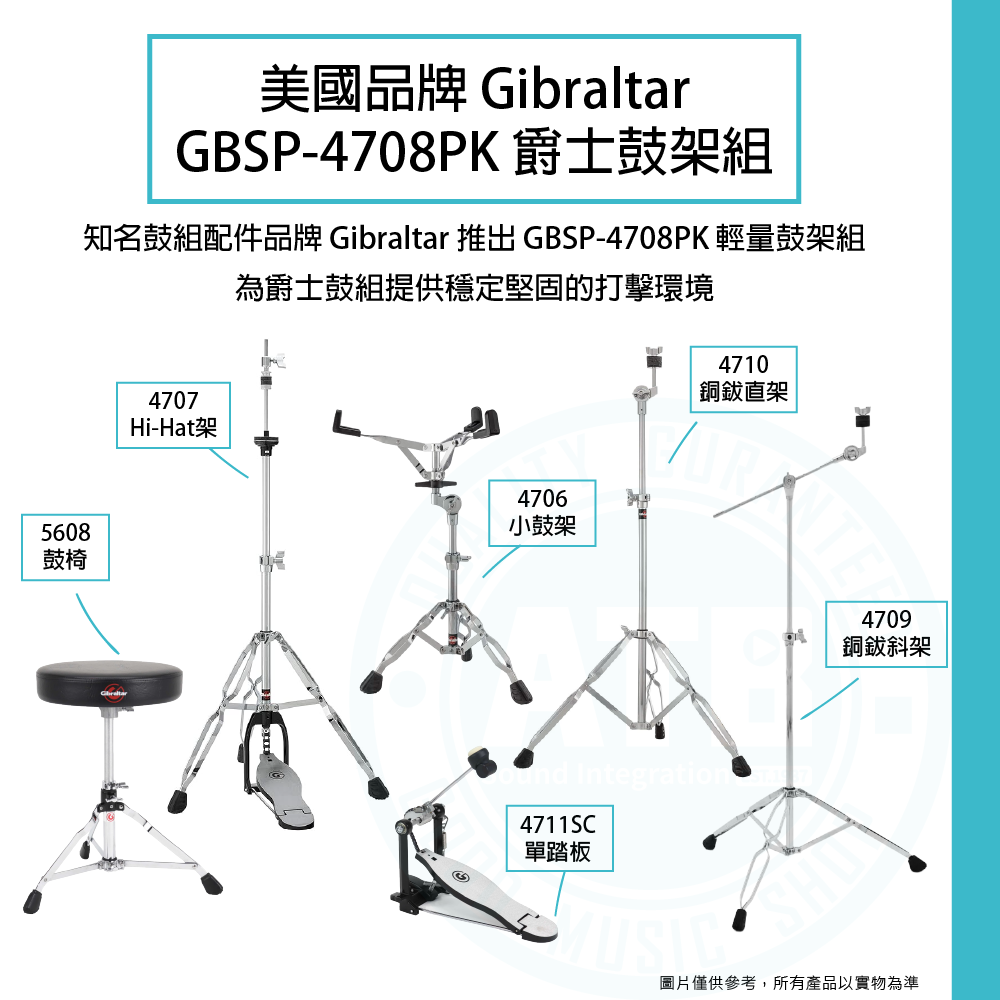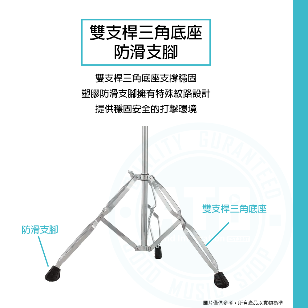 ◆ 包含小鼓架、銅鈸架x2、Hi-hat架、踏板、鼓椅