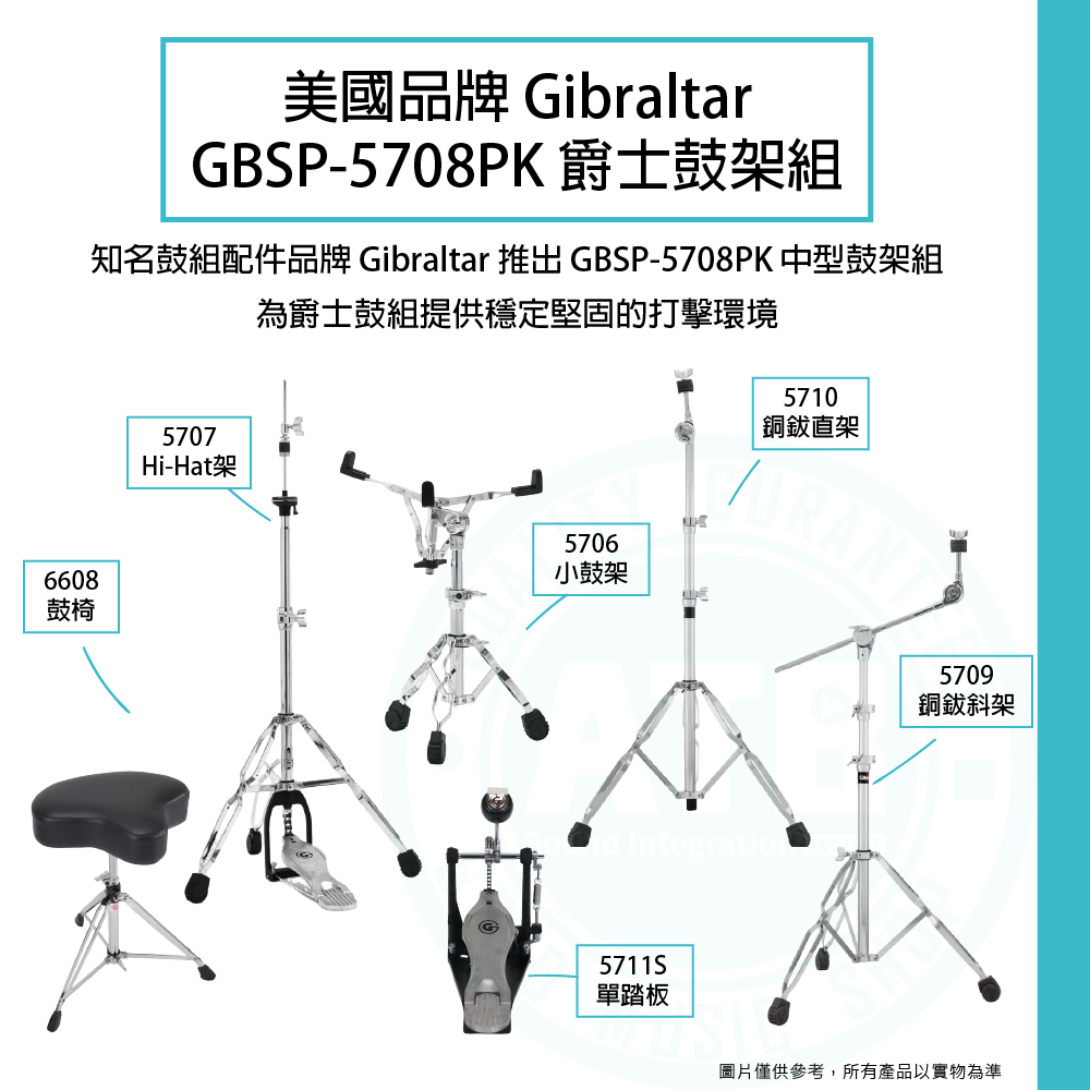 ◆ 包含小鼓架、銅鈸架x2、Hi-hat架、踏板、鼓椅