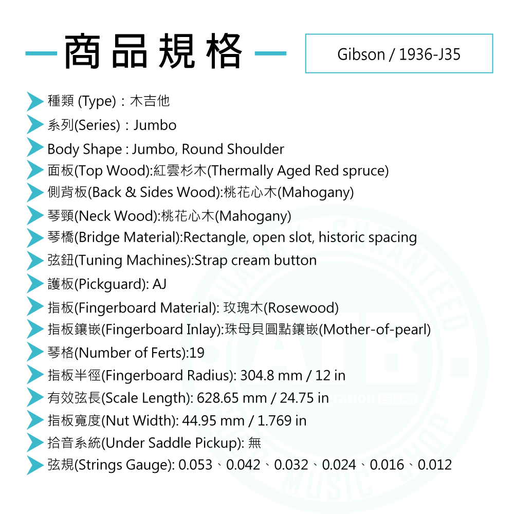 ◆由 1936 年的 Jumbo 發展而來,提供溫暖且平衡的音色