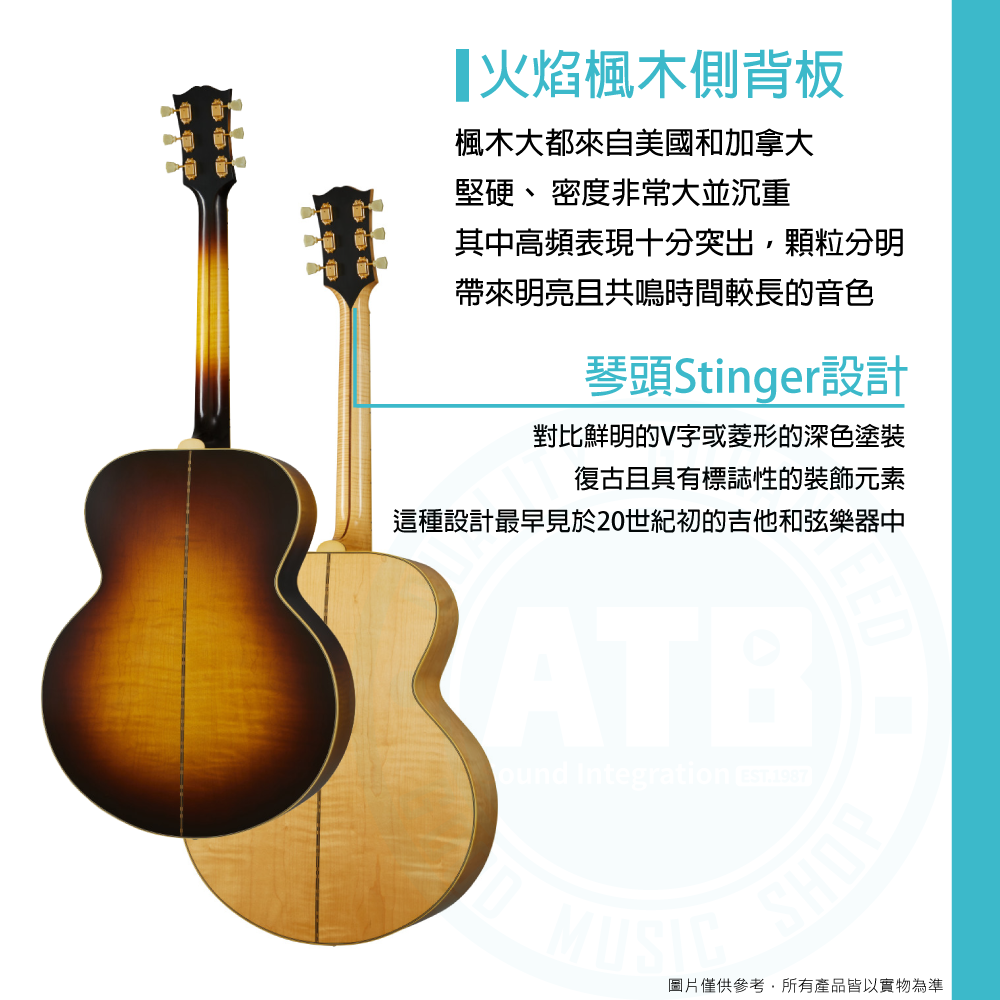 ◆採經熱處理的側背板火焰楓木,搭配西卡雲杉面板
