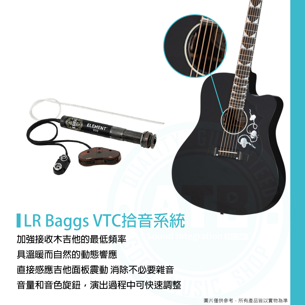 ◆LR Baggs VTC拾音系統 加強低頻 溫暖而自然的動態響應 感應吉他面板震動 消除不必要雜音