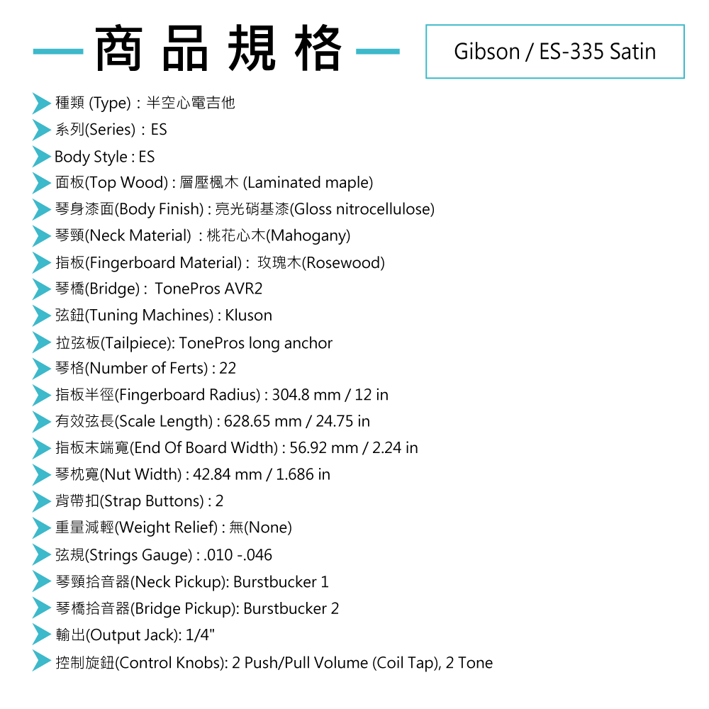 ◆ 經典Gibson ES-335爵士半空心電吉他