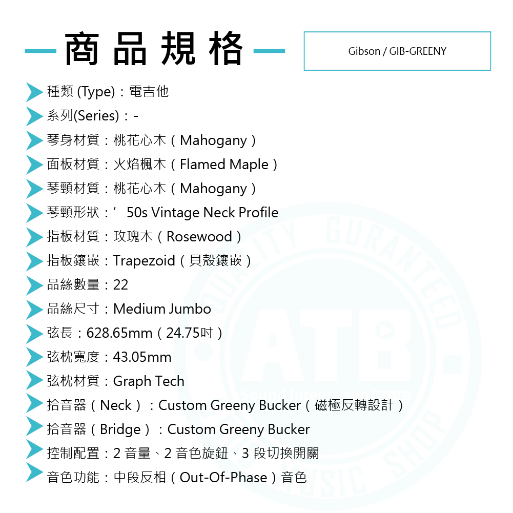 ◆ Custom Greeny Bucker 提供反相音色特色