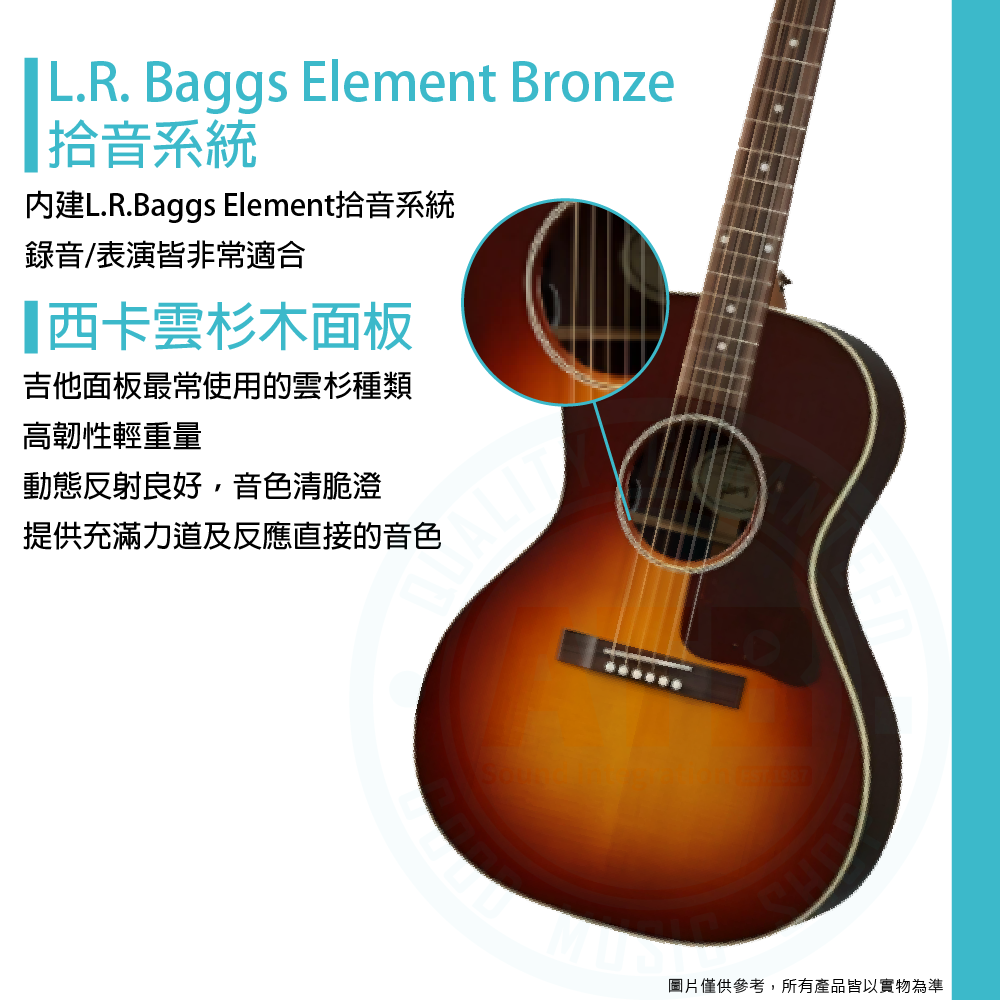 ◆L.R. Baggs Element Bronze 主動式拾音器充分的感受琴體的振動