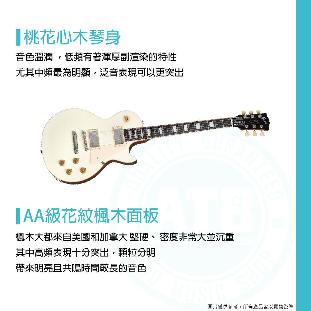 ◆ 實心桃花心木 搭配 AA級花紋楓木,經典Les Paul厚實音色,外觀華麗具收藏價值
