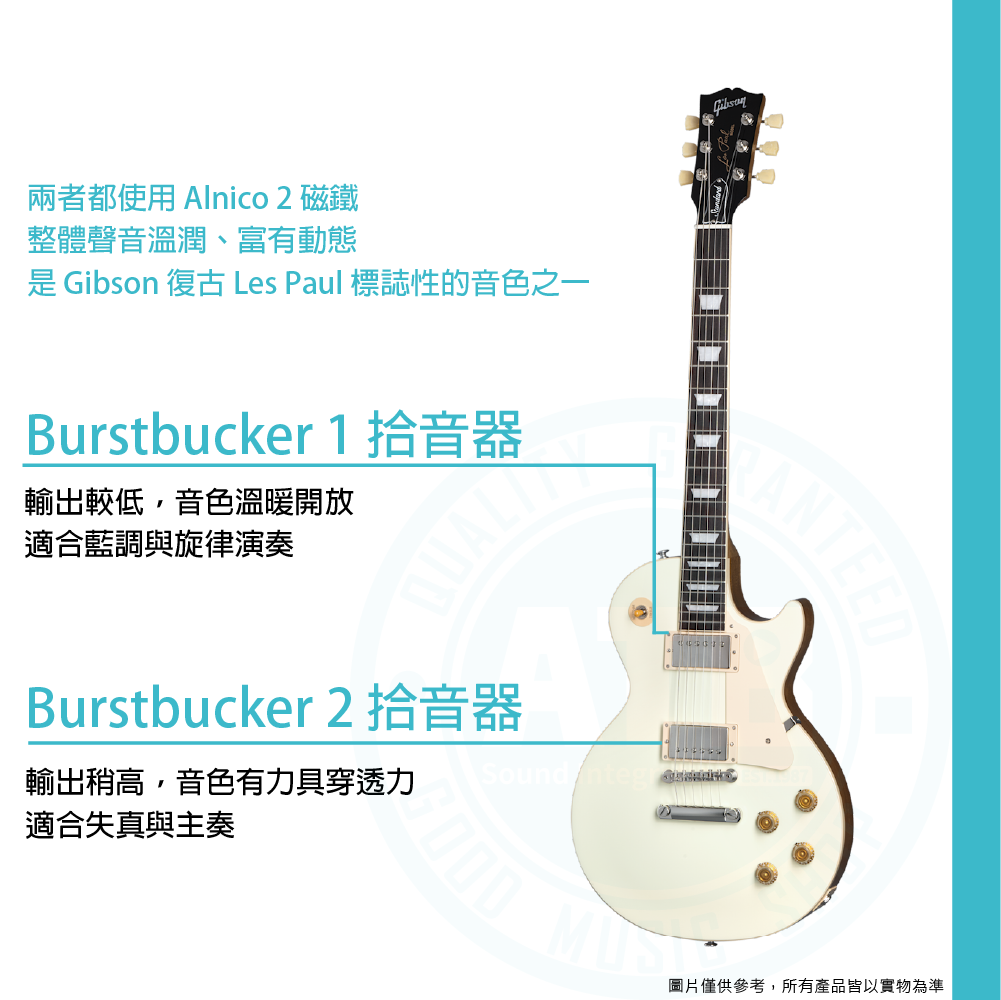 ◆ Burstbucker 1&2拾音器,搭配Alnico II磁鐵,溫暖顆粒感十足