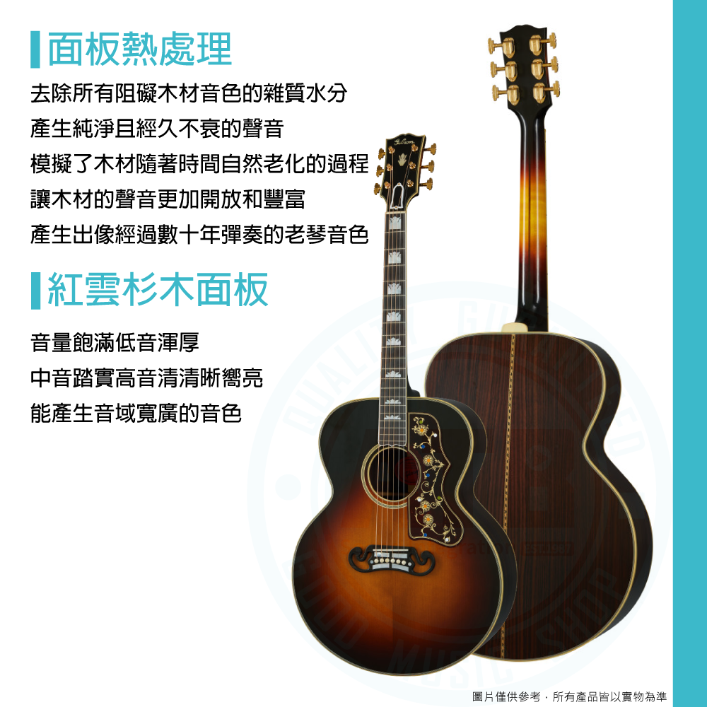 ◆採經熱處理紅雲杉木面板搭配玫瑰木側背板及頂級烏木指板