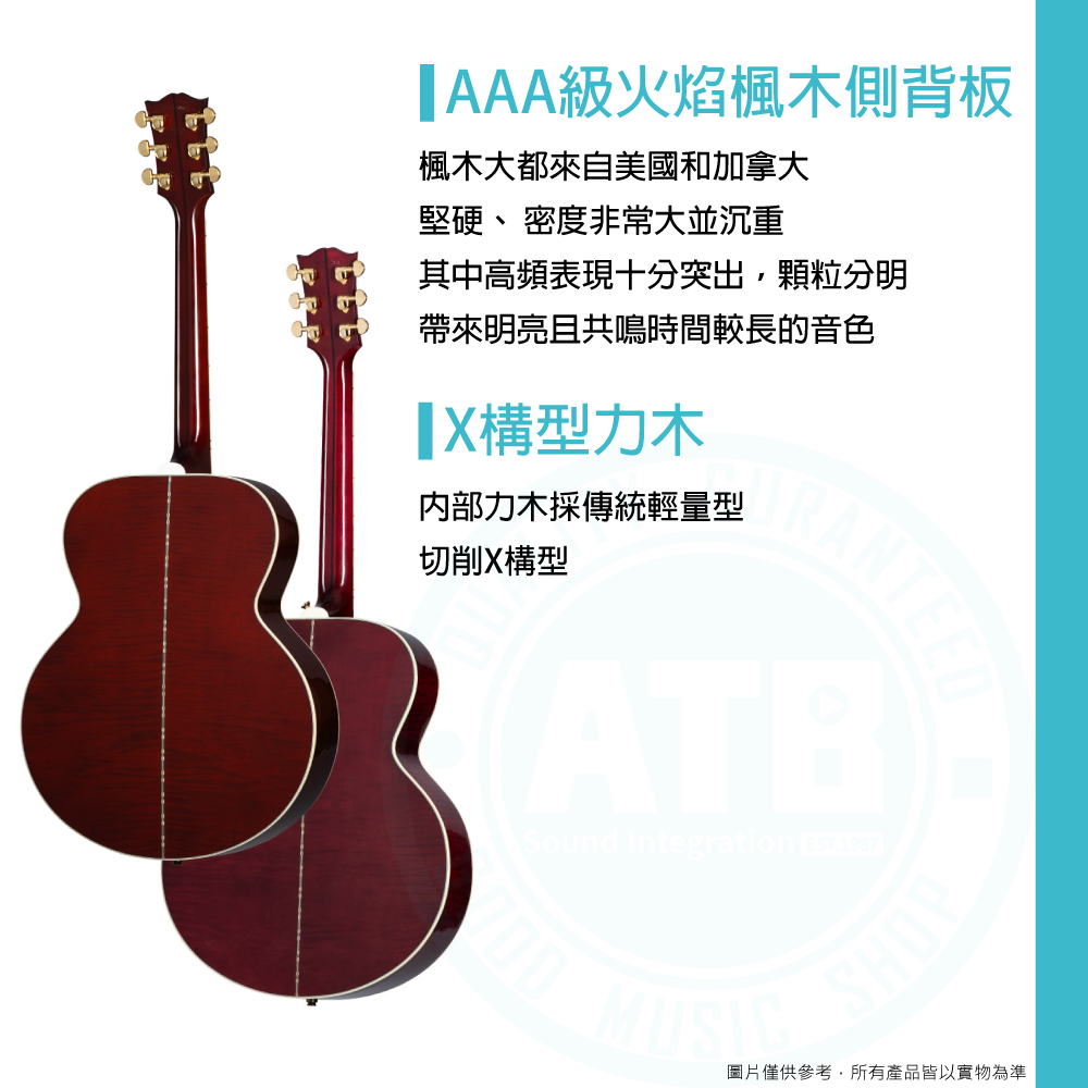 ◆採側背板實心AAA級火焰楓木,實心AAA西卡雲杉面板