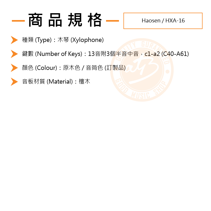 HAOSEN/HXA-16 16音 中音 原木色 箱型木琴
