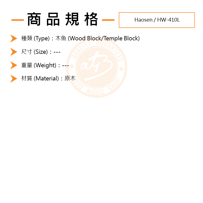 HAOSEN/HW-410L 原木色 雙頭木魚