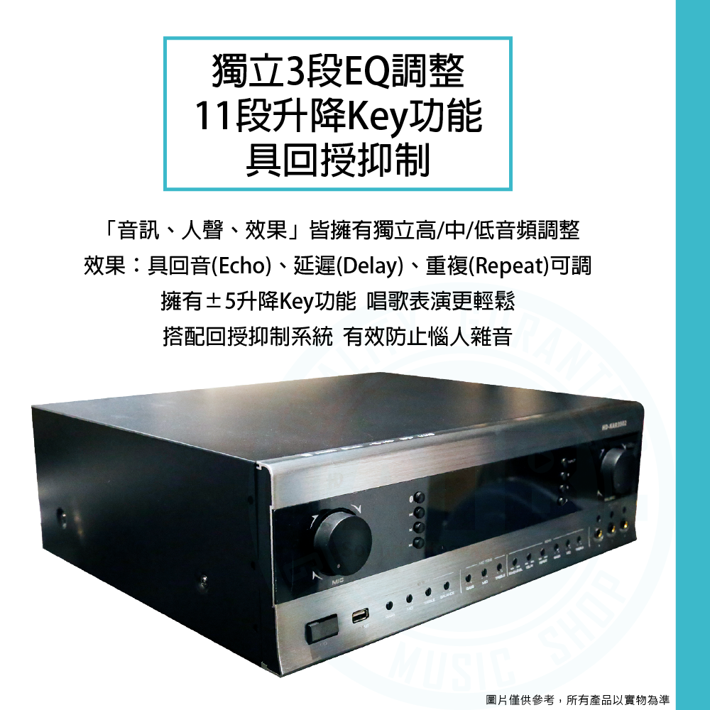 ◆ 擁有11段升降Key功能與回授抑制,輕鬆演唱無雜音
