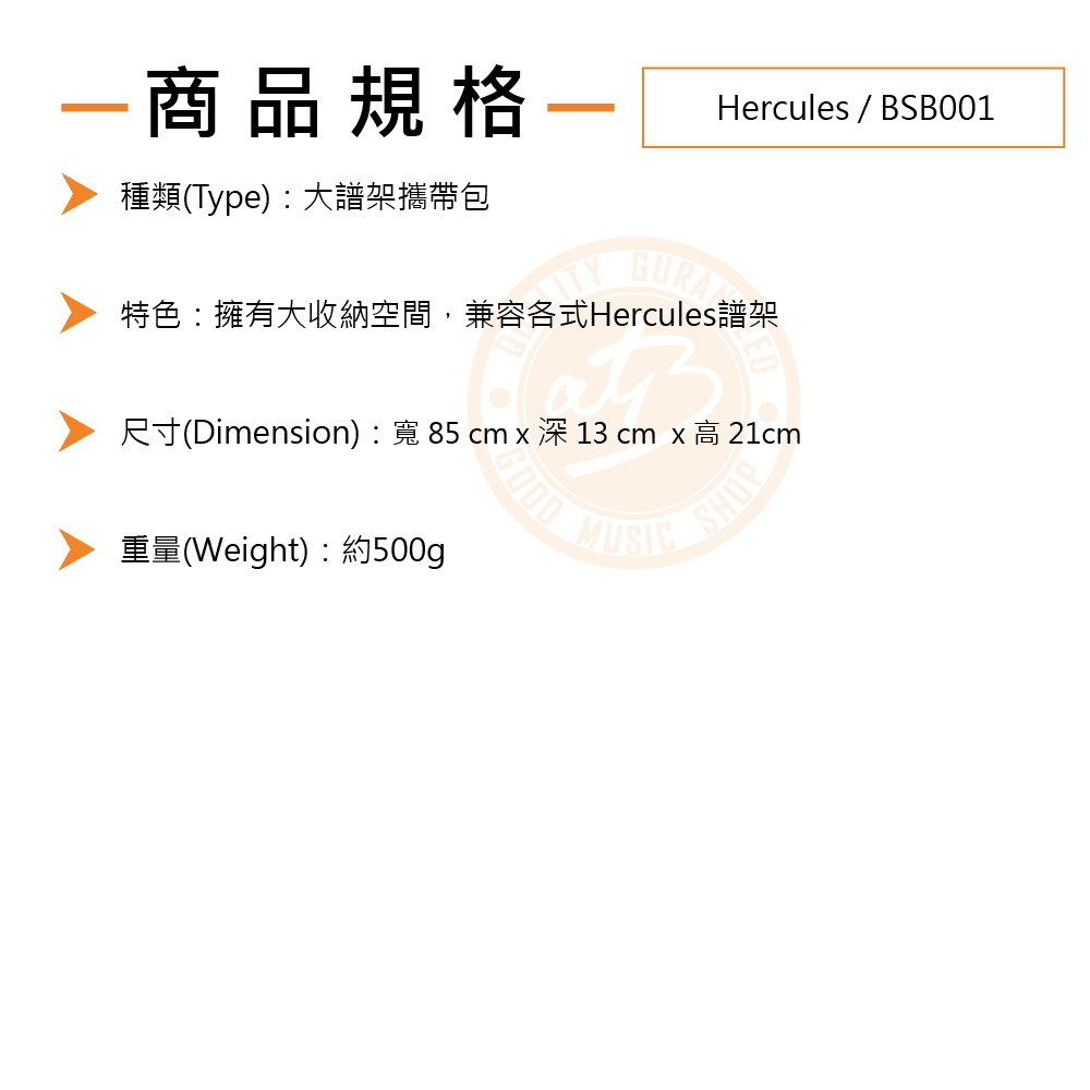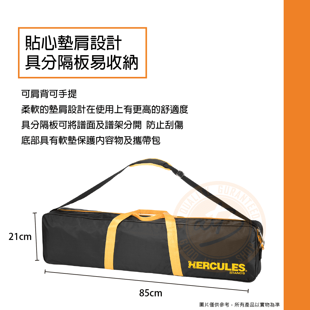 ◆ 可放置Hercules管弦樂支架1支或樂器支架2支