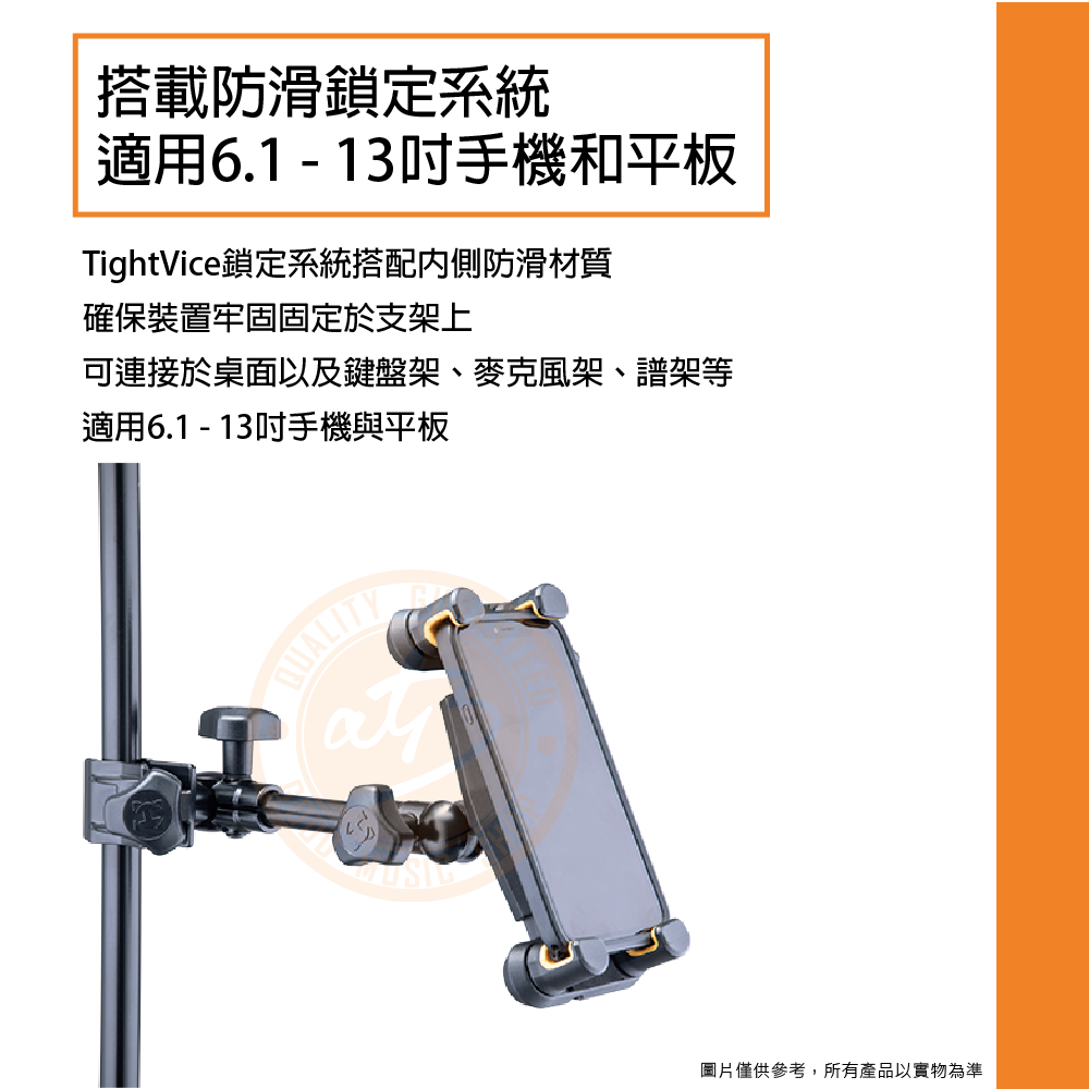 ◆ TightVice鎖定系統搭配內側防滑材質,確保裝置牢固固定於支架上