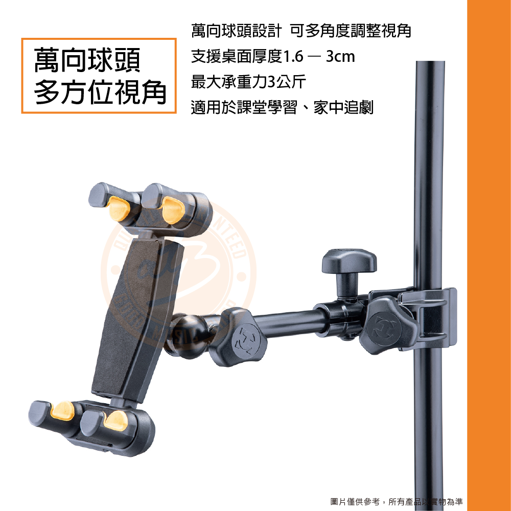 ◆ 可連接於桌面以及鍵盤架、麥克風架、譜架等,適用6.1 - 13吋手機與平板