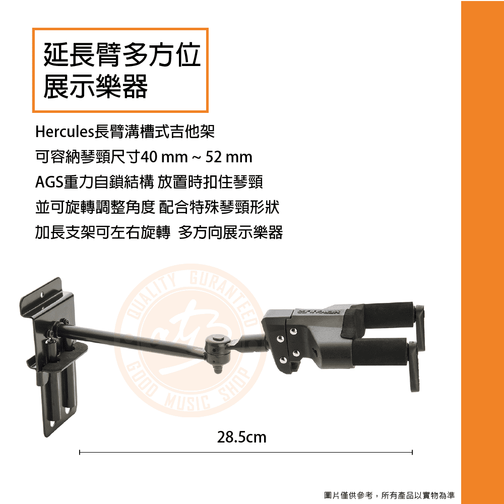 ◆ 可容納琴頸尺寸40 mm ~ 52 mm,AGS重力自鎖結構,放置時扣住琴頸,並可旋轉調整角度