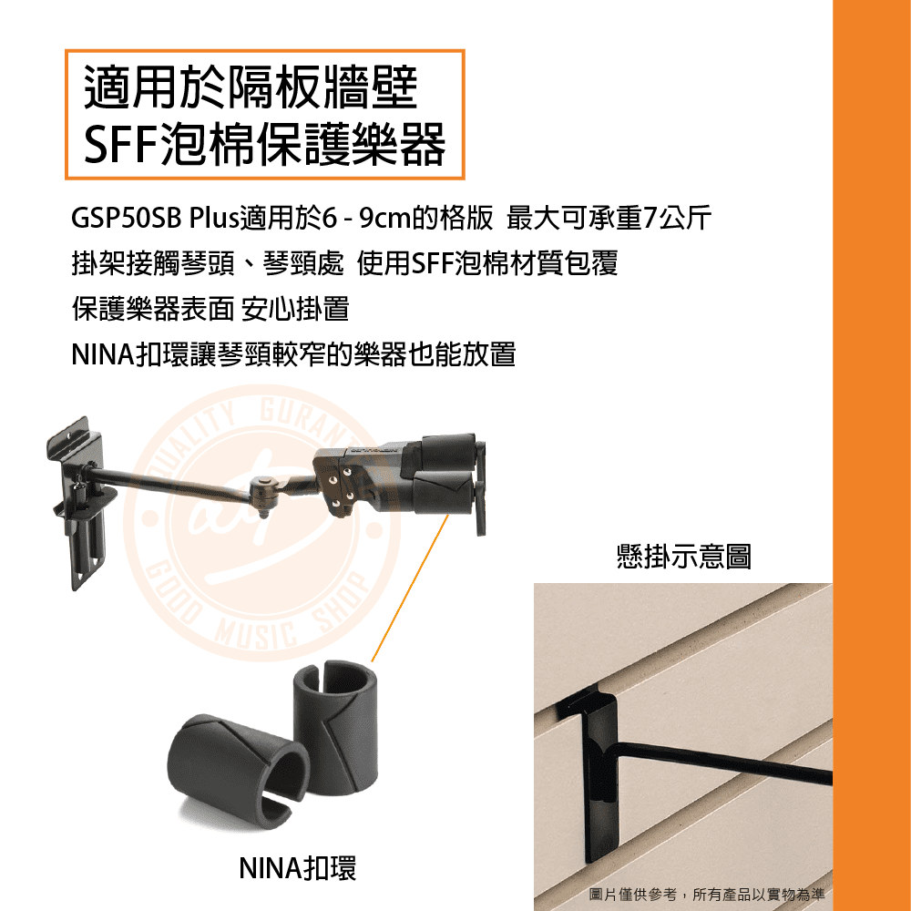 ◆ 適用於6 - 9cm的格版,SFF泡棉材質包覆保護樂器表面,NINA扣環讓琴頸較窄的樂器也能放置