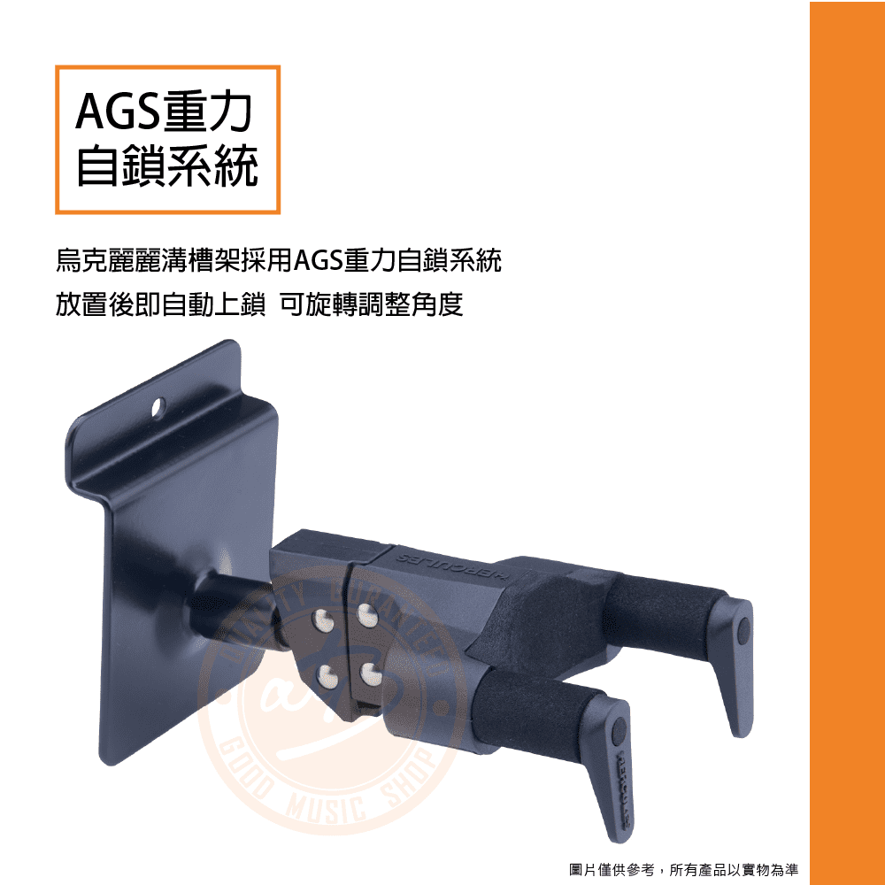 ◆ 烏克麗麗溝槽架採用AGS重力自鎖系統,放置後即自動上鎖,可旋轉調整角度