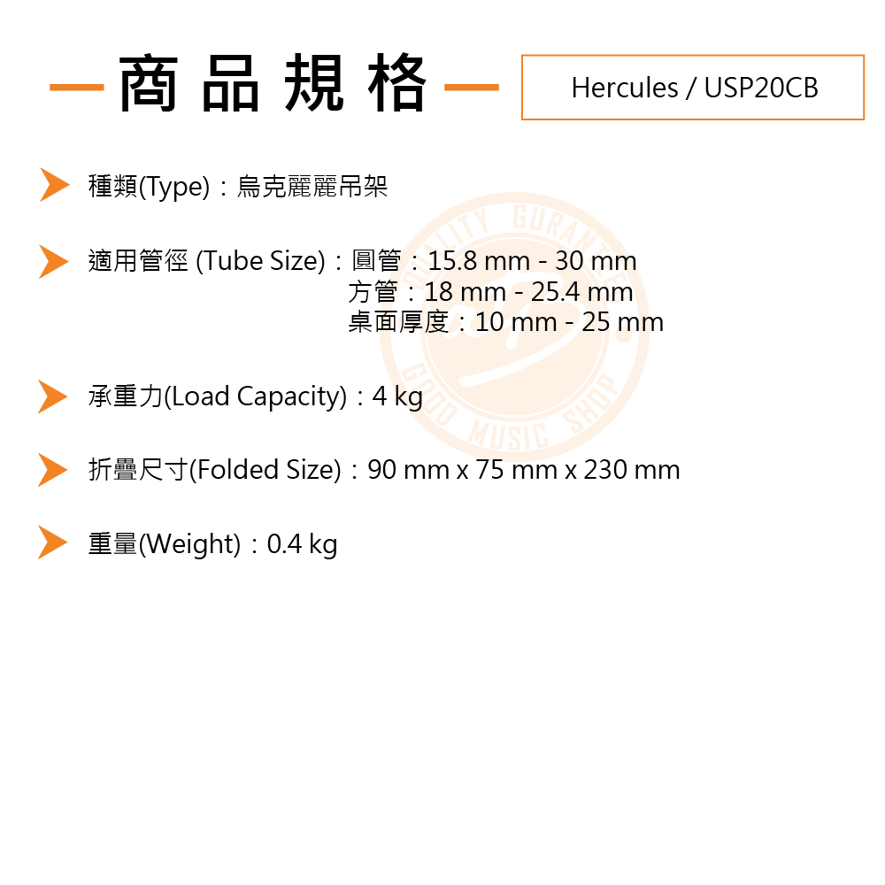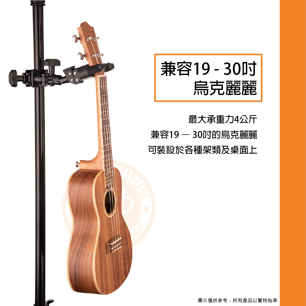 ◆ 最大承重力4公斤,兼容19 – 30吋的烏克麗麗,可裝設於各種架類及桌面上