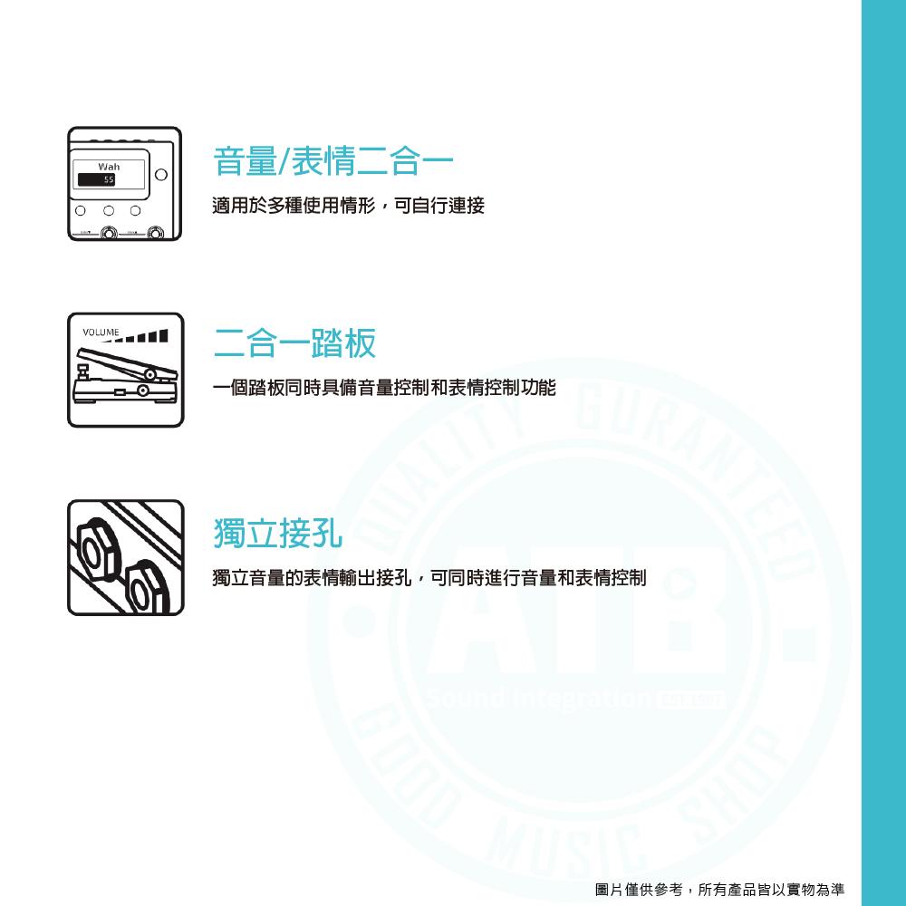 ◆ 二合一設計可作為音量踏板或表情踏板使用,靈活應用於不同演奏場景