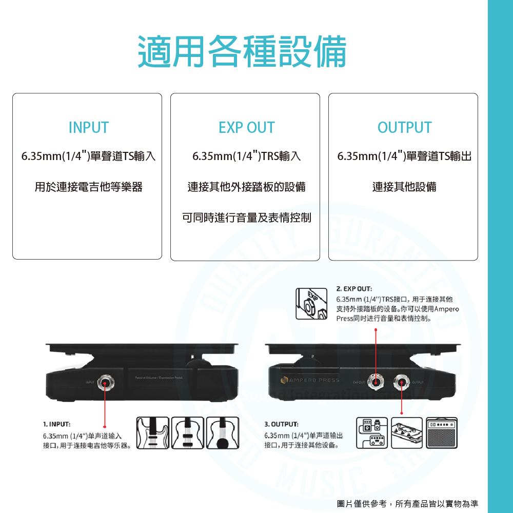 ◆ 具備 TS 音訊輸入/輸出與 TRS Expression Out,適用於各類吉他效果器、多效果器與合成器設備