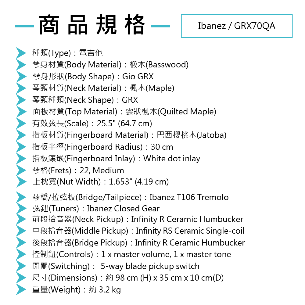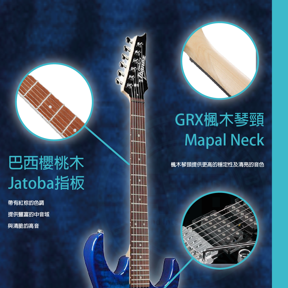 ◆ 白楊木搭配楓木琴頸,提供清晰且驚人的延音效果
