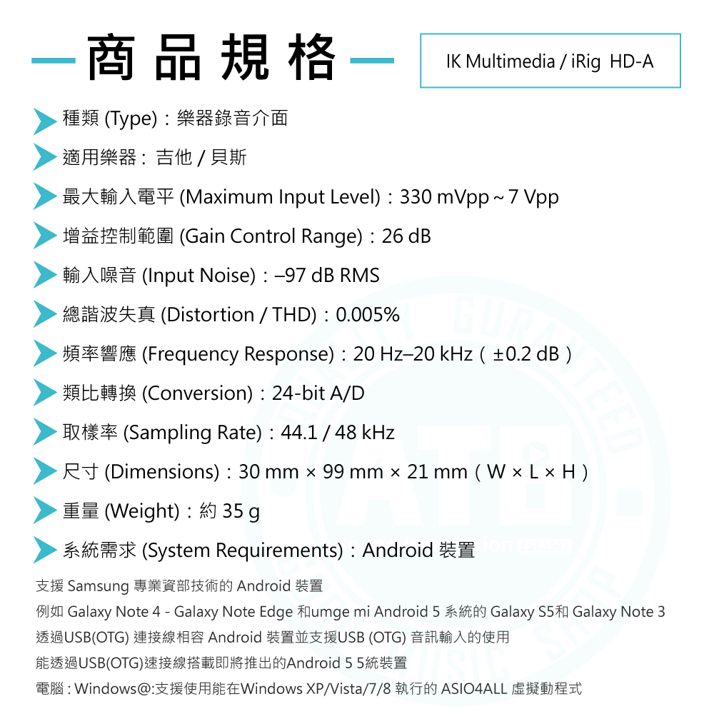 ◆多樂器相容性高,可接吉他、貝斯、鍵盤與線性訊號