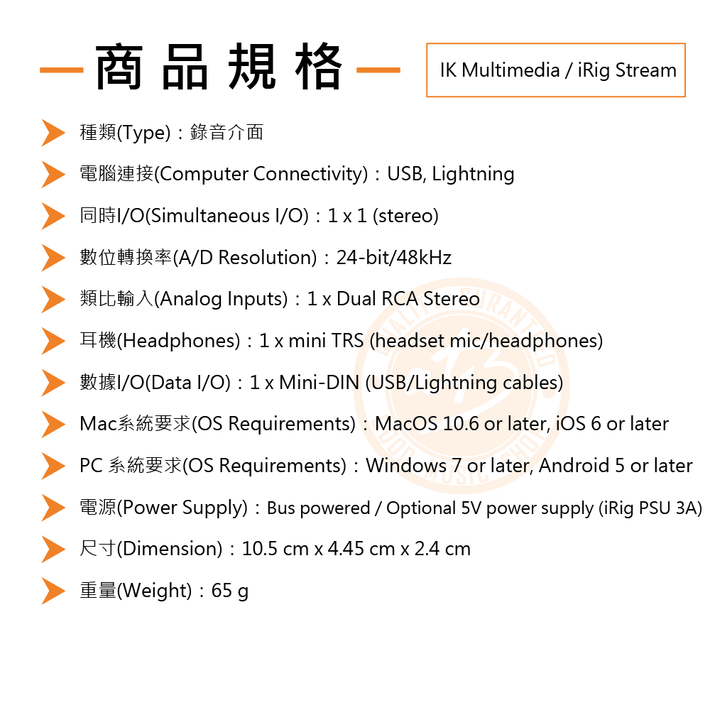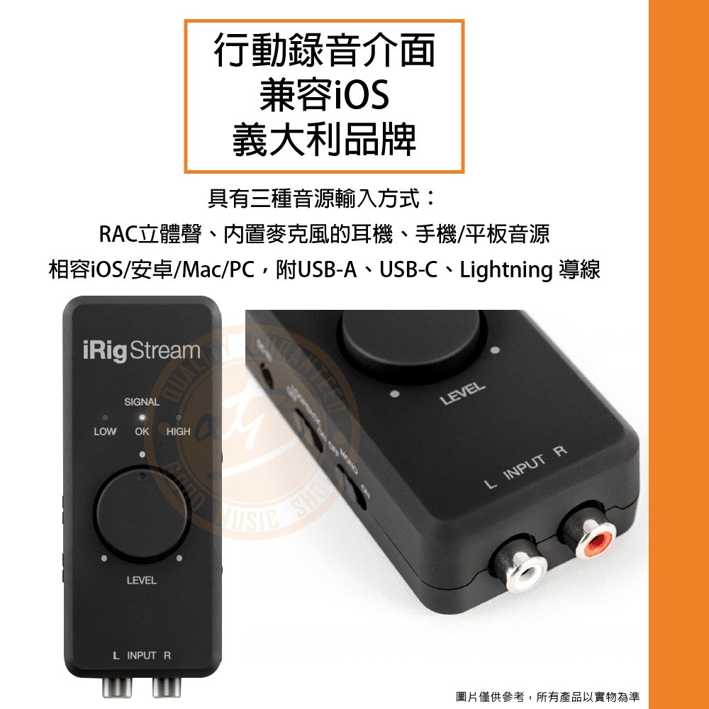 ◆ 義大利品牌-行動錄音介面,相容iOS/安卓/Mac/PC