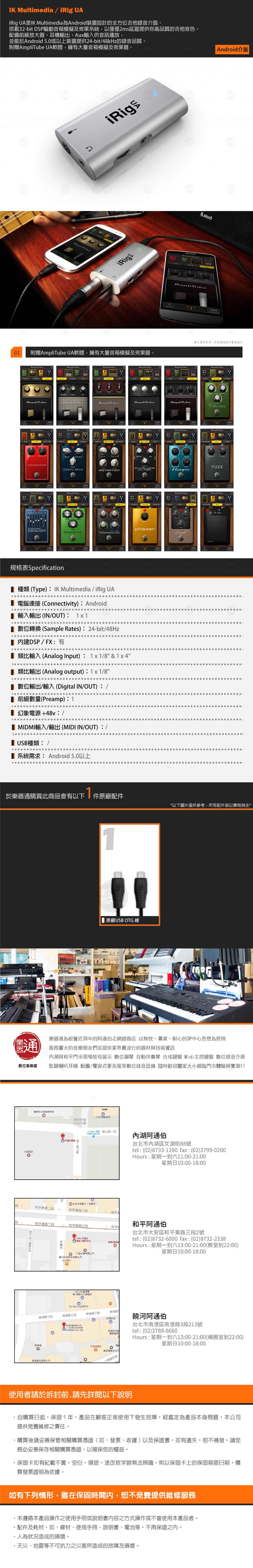 ◆為Android裝置設計的全方位吉他錄音介面