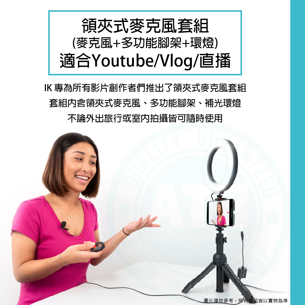 ◆ 領夾式麥克風+多功能腳架+環燈