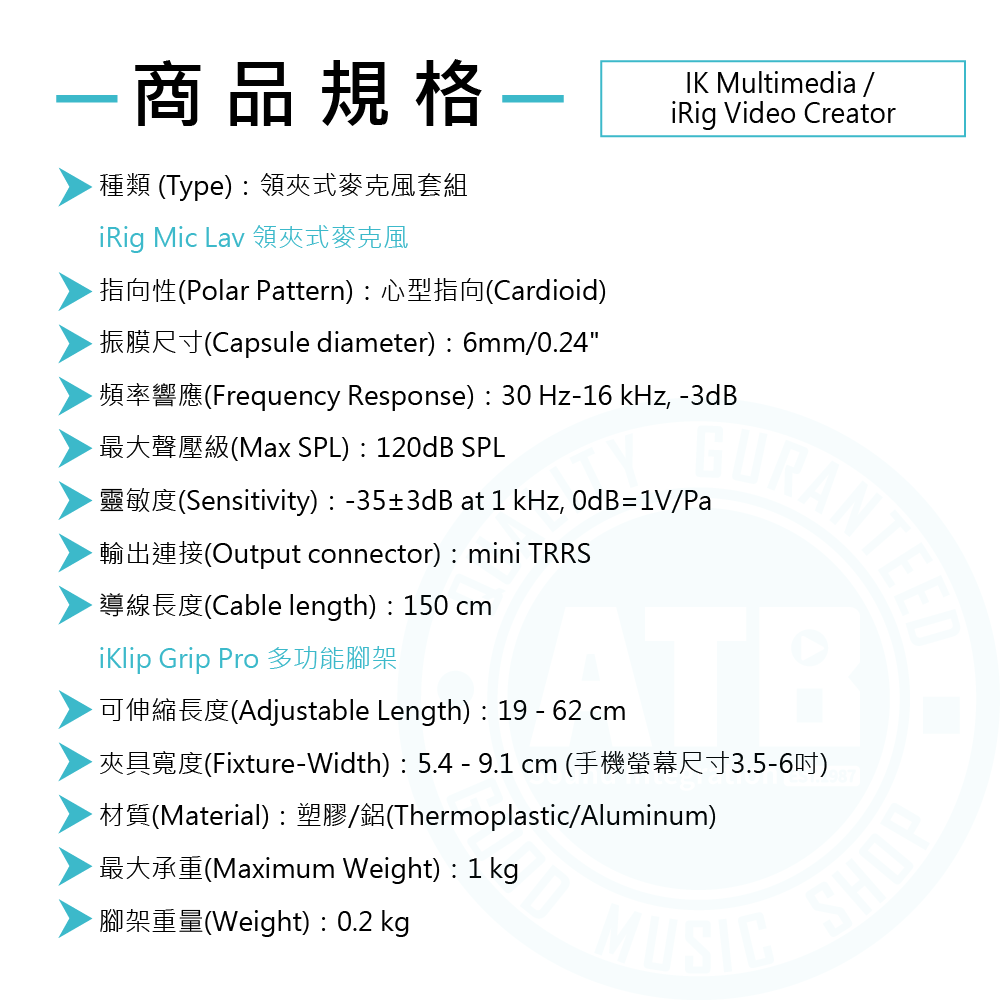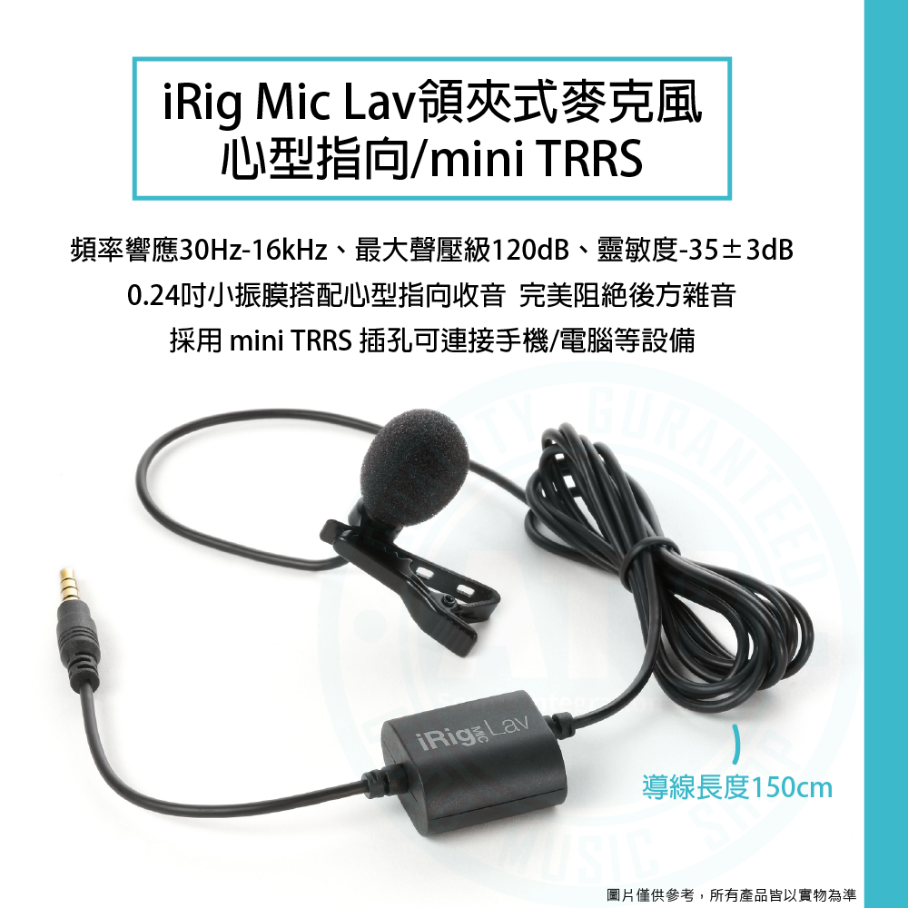 ◆ iRig Mic Lav領夾式麥克風,採心型指向/mini TRRS連接