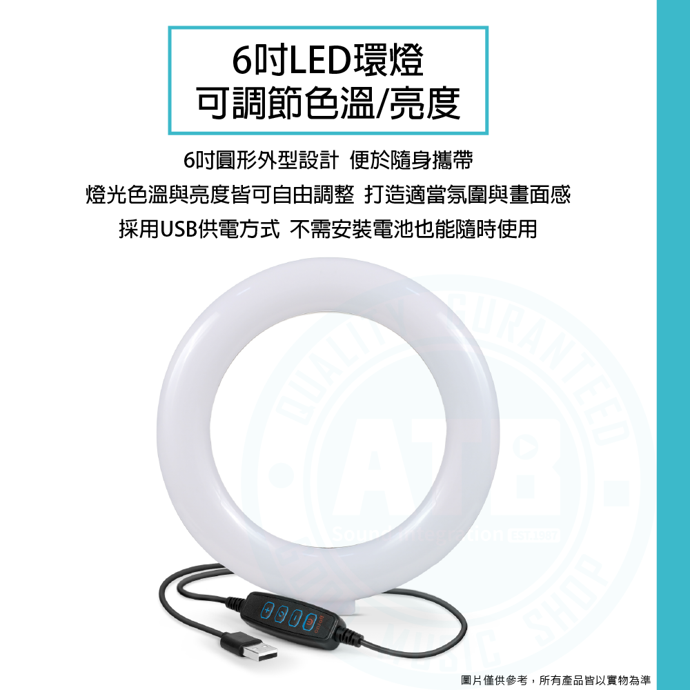 ◆ 6吋LED環燈,可調節色溫/亮度