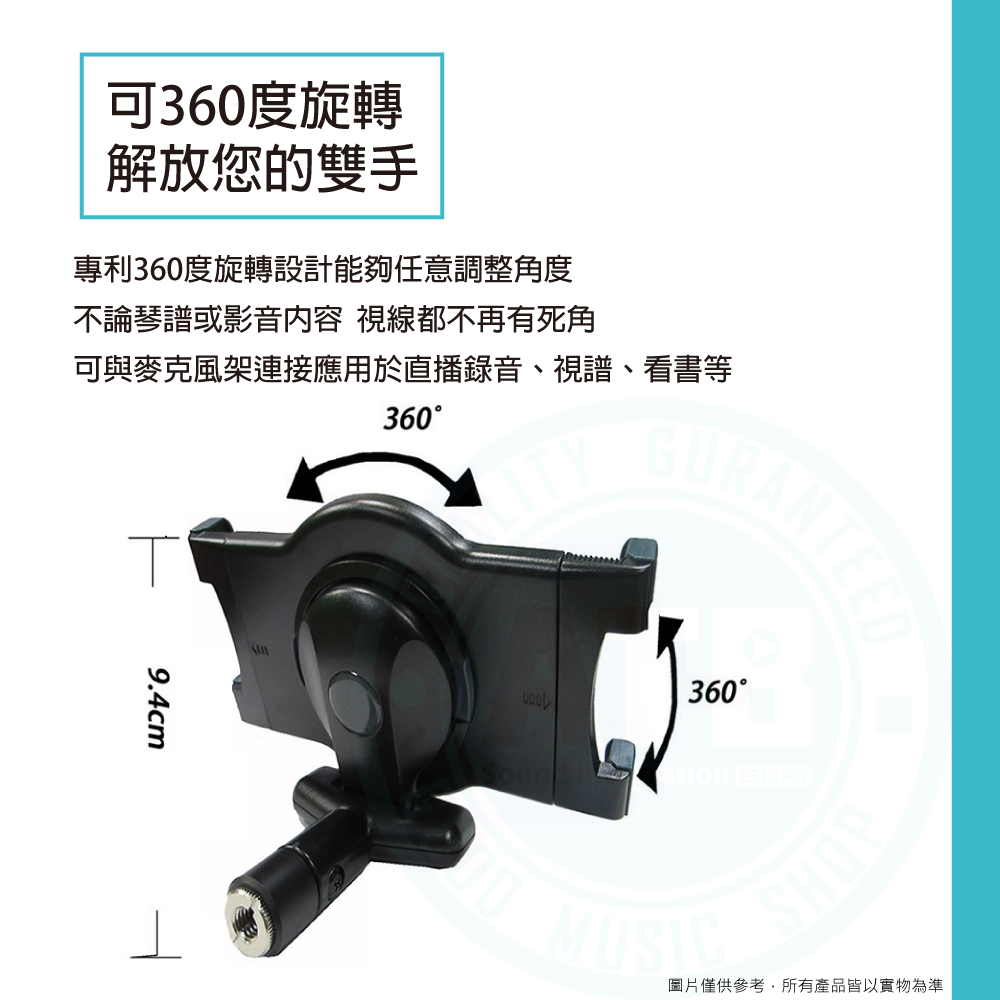 ◆ 專利360度旋轉設計能夠任意調整角度,可應用於直播錄音、視譜、看書等