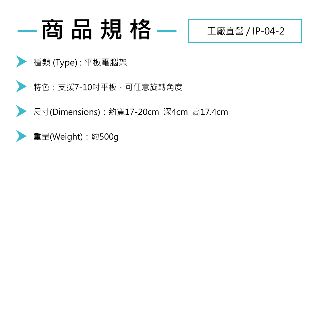 ◆ 支援7-10吋平板電腦使用,夾具寬度約17-20公分