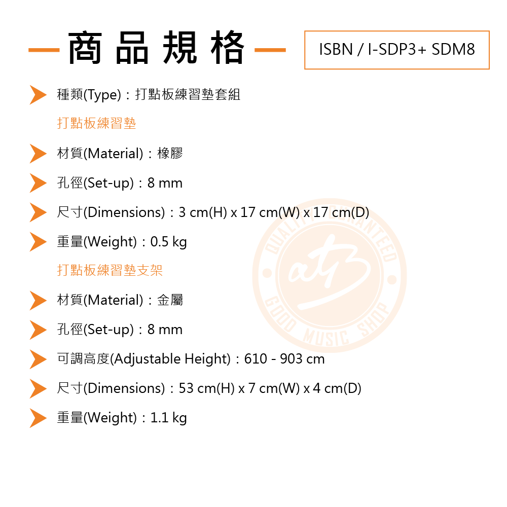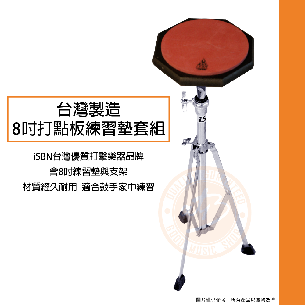 ◆ 內含8吋練習墊與支架,適合鼓手家中練習