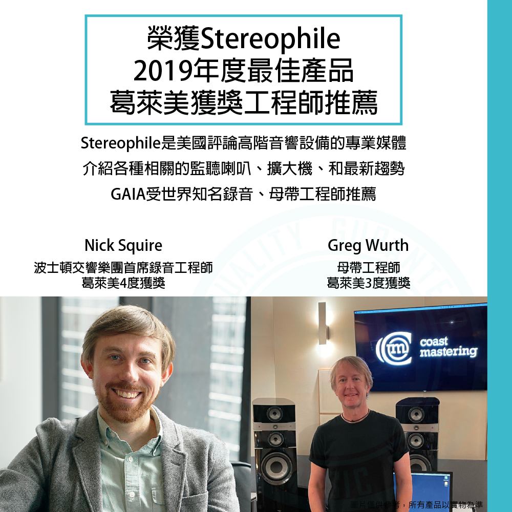 ◆ 榮獲Stereophile2019年度最佳產品,葛萊美獲獎工程師推薦