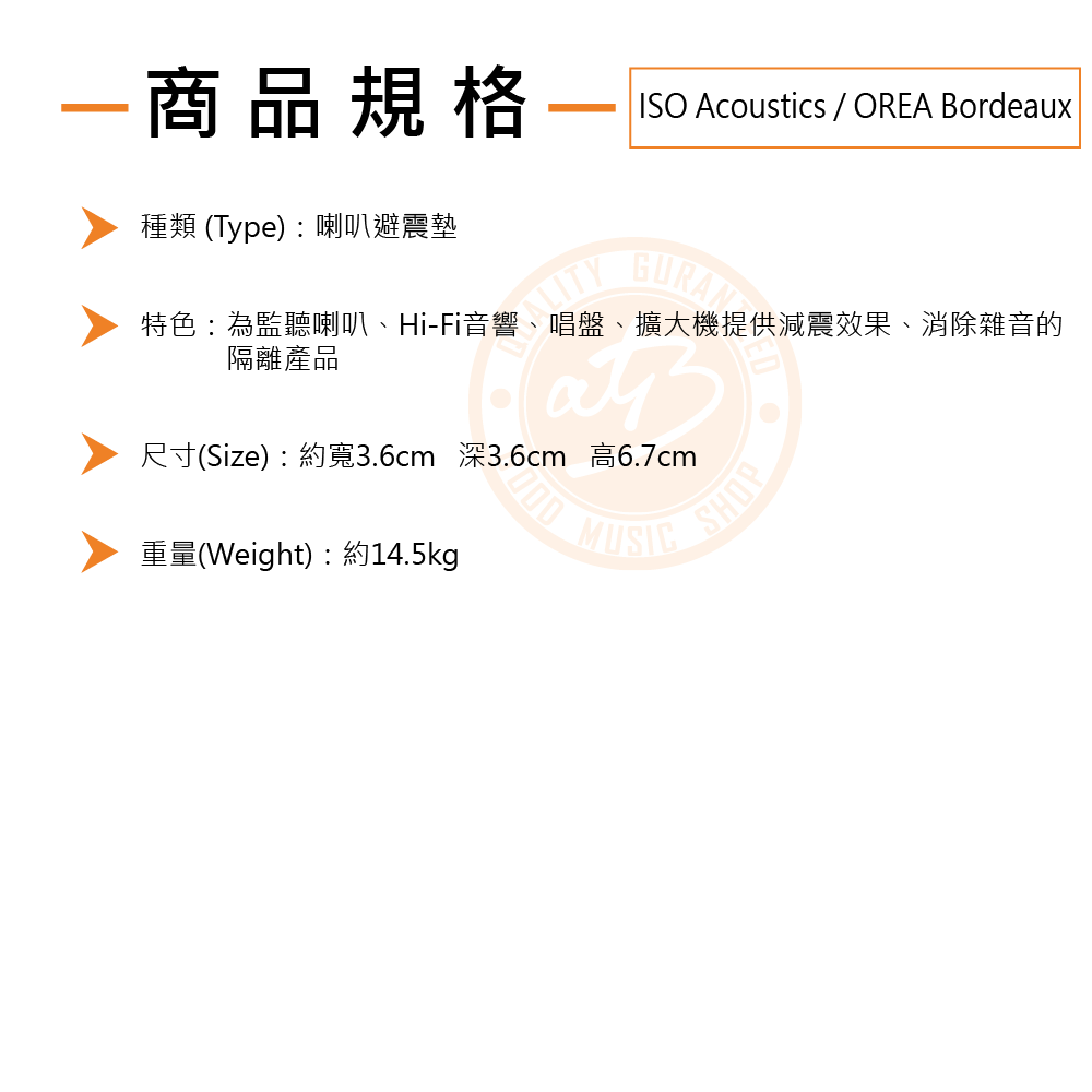◆ 最大承重度32磅(約14.5kg),為監聽喇叭、Hi-Fi音響、唱盤、擴大機提供減震效果、消除雜音