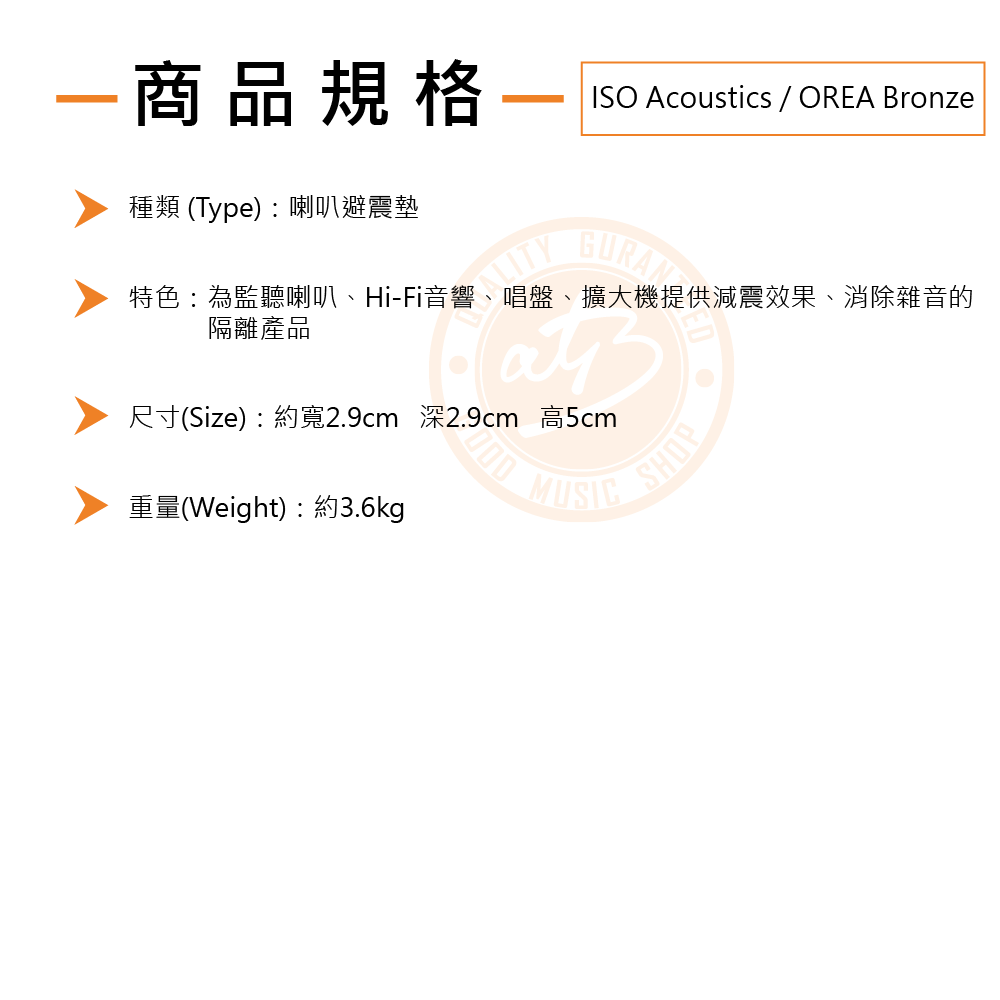 ◆ 最大承重度8磅(約3.63kg),為監聽喇叭、Hi-Fi音響、唱盤、擴大機提供減震效果、消除雜音
