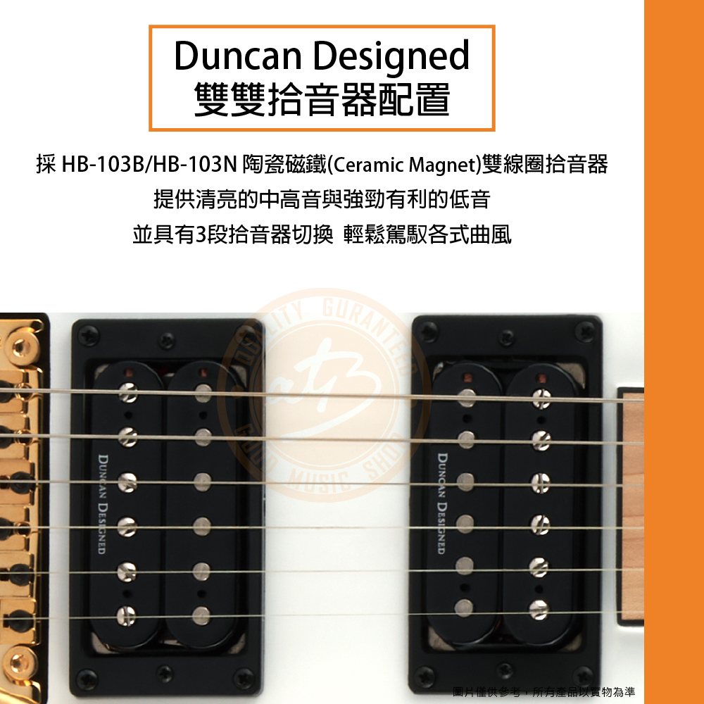 ◆ 搭載Duncan Designed雙雙拾音配置,並擁有3段式EQ切換