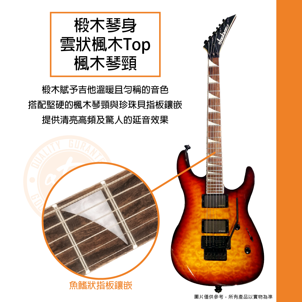 ◆ 椴木琴身、雲狀楓木Top、楓木琴頸,賦予吉他溫暖且勻稱的音色