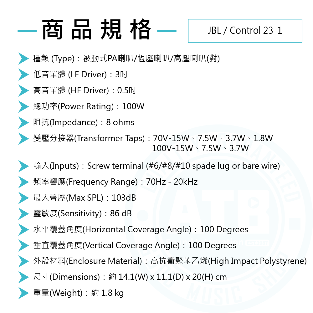 ◆ 3吋低音單體、總功率100W、被動式PA喇叭(可切換高壓喇叭)