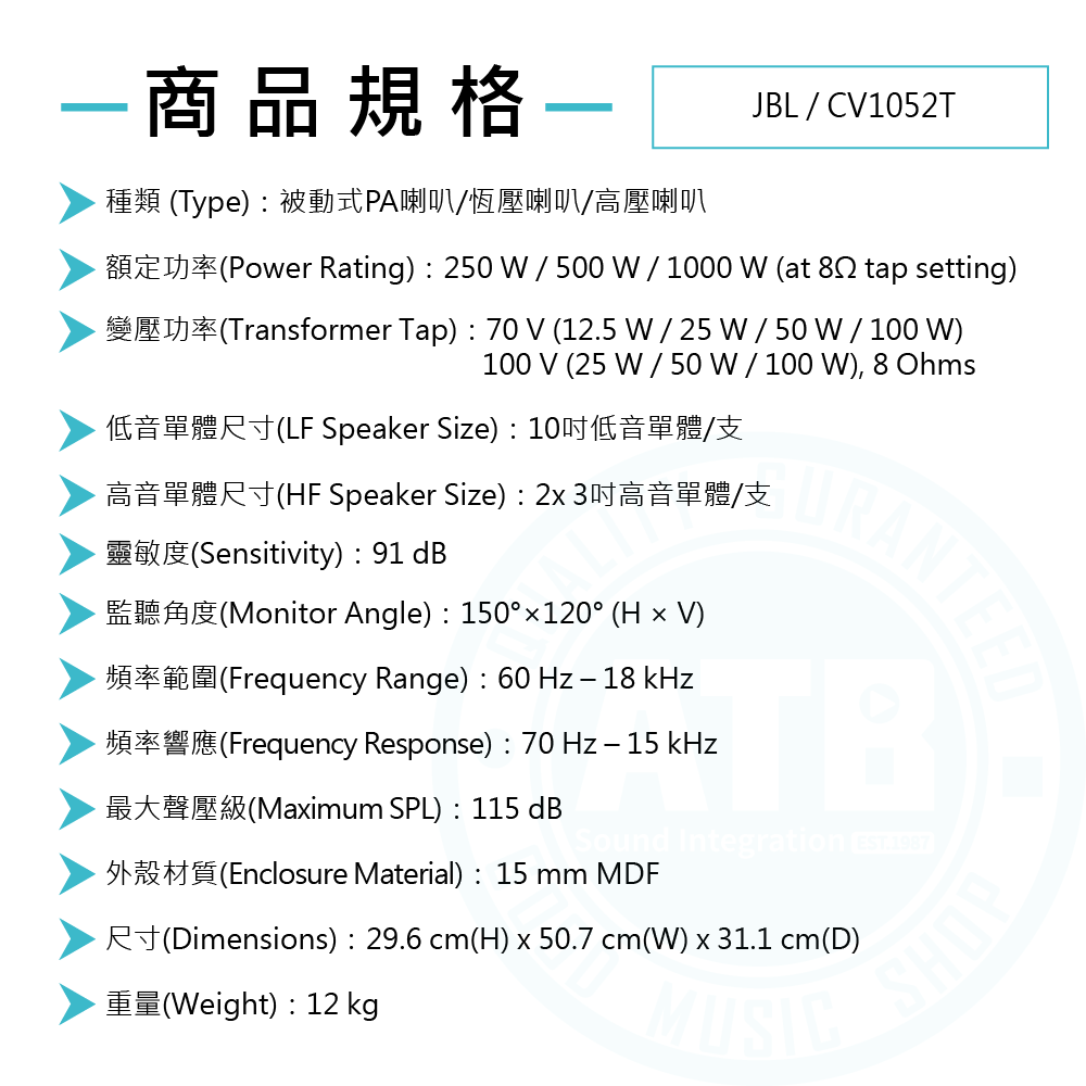 ◆ 10吋低音單體/總功率250W/被動式PA喇叭(可切換高壓喇叭)