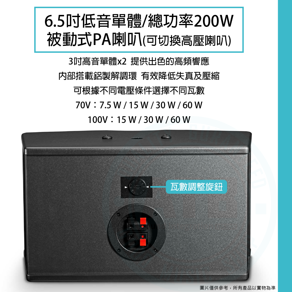◆ 6.5吋低音單體/總功率150W/被動式PA喇叭(可切換高壓喇叭)