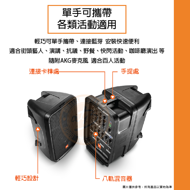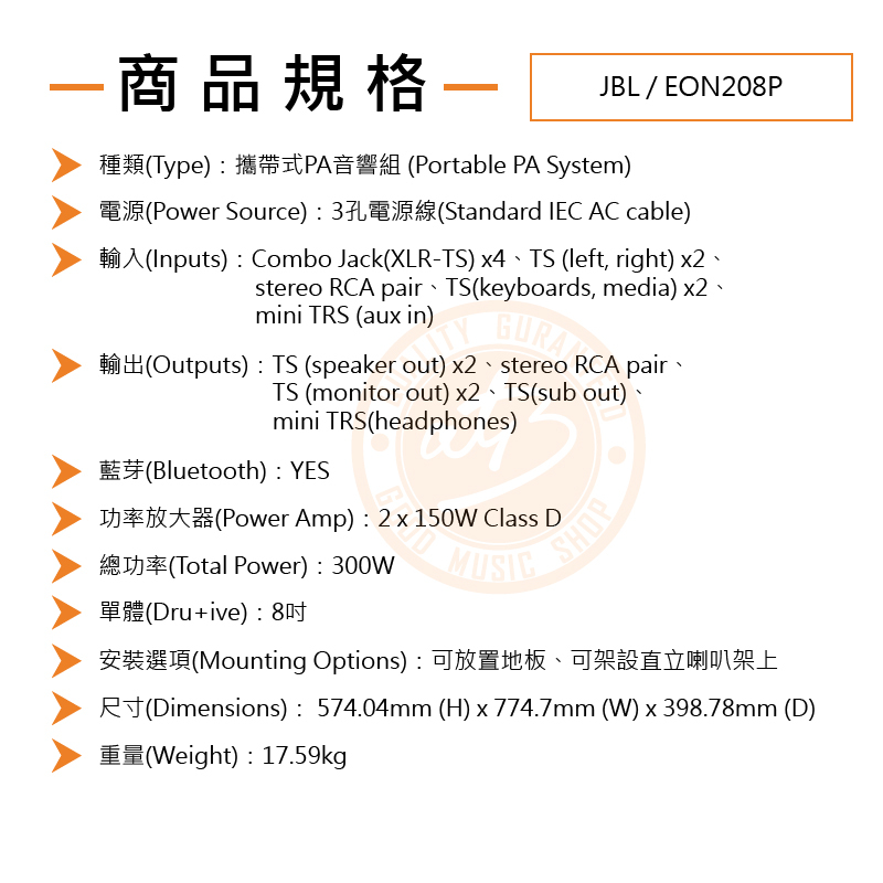 ◆內建D類放大器、2個8吋150W喇叭、Reverb效果