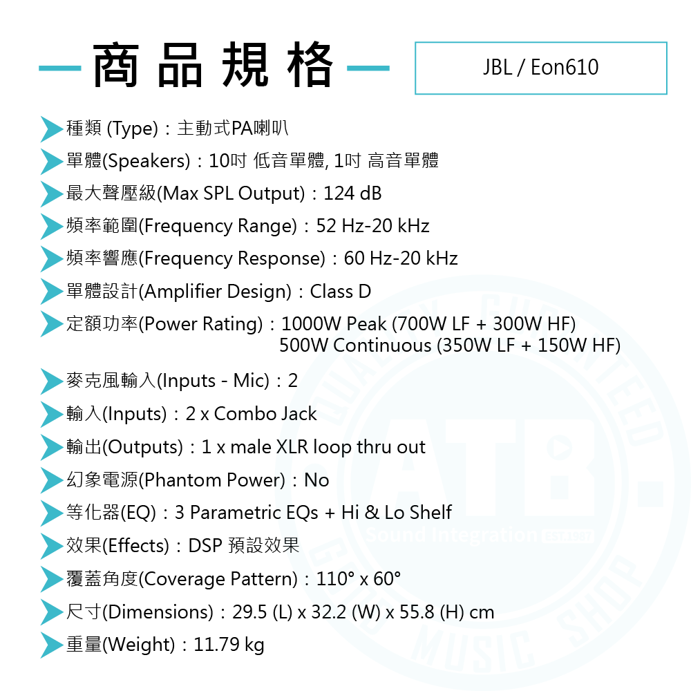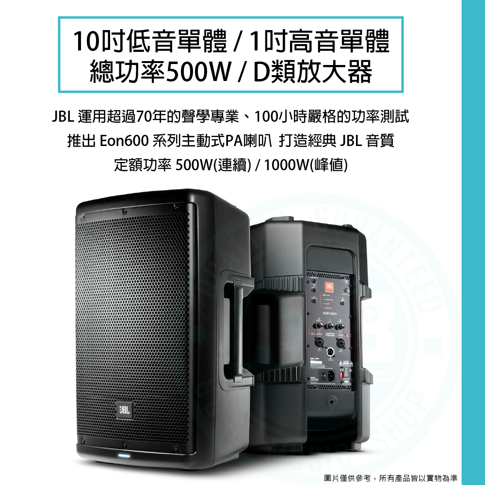 ◆ 10吋低音單體、1吋高音單體、總功率500W(連續)