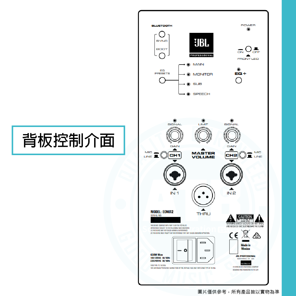 ◆ 12吋低音單體、1吋高音單體、總功率500W(連續)