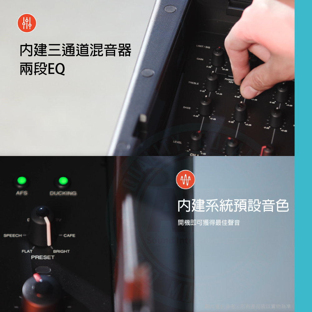 ◆ 專業音訊處理功能,AFS 防回授、EQ 預設與語音閃避