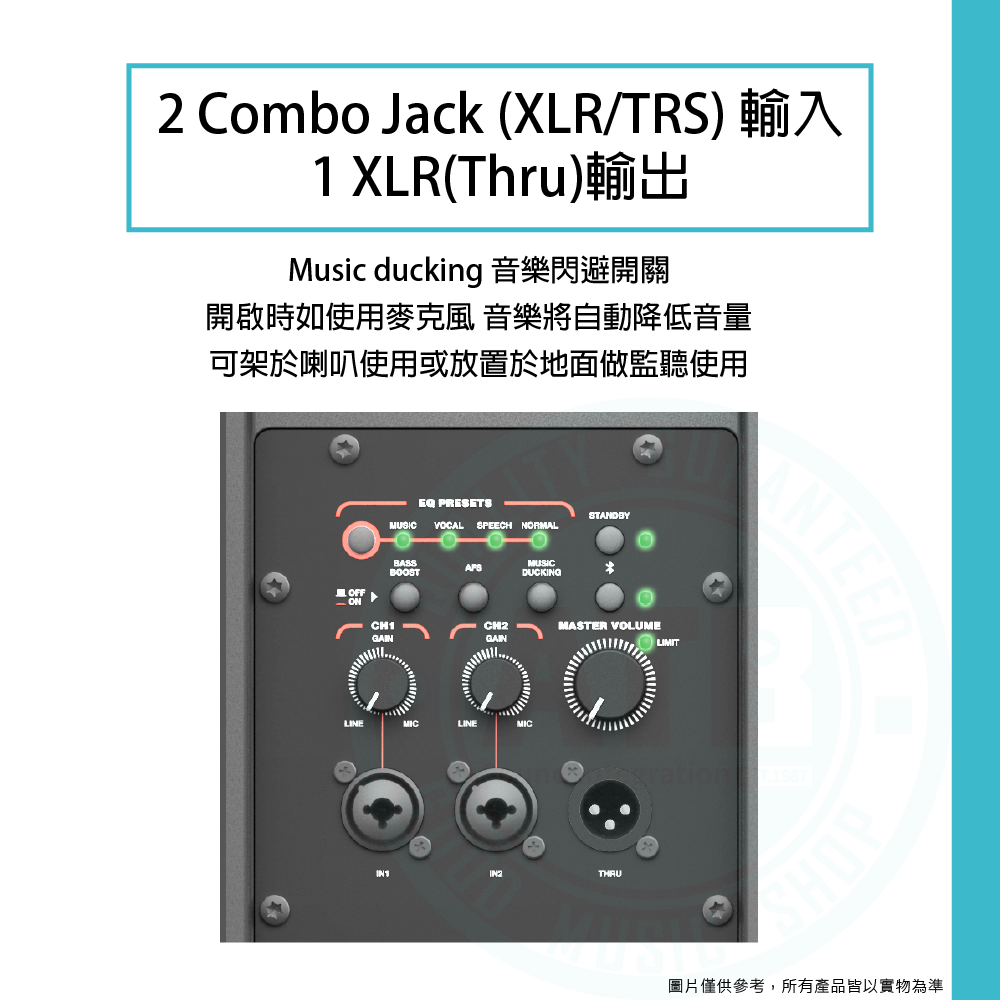 ◆ 2 Combo Jack輸入、1 XLR(Thru) 輸出