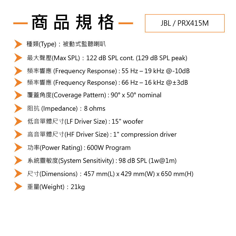 ◆ 最大聲壓122dB,功率600w @ 8 ohms