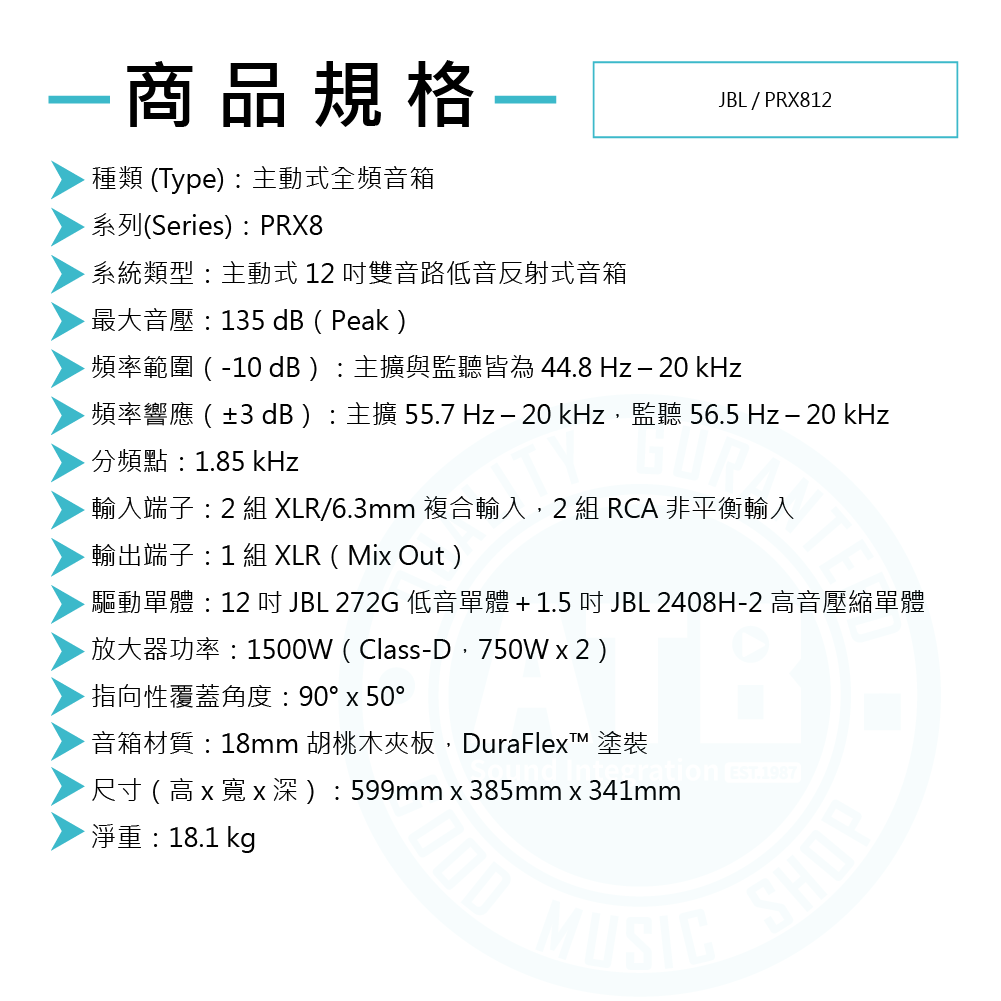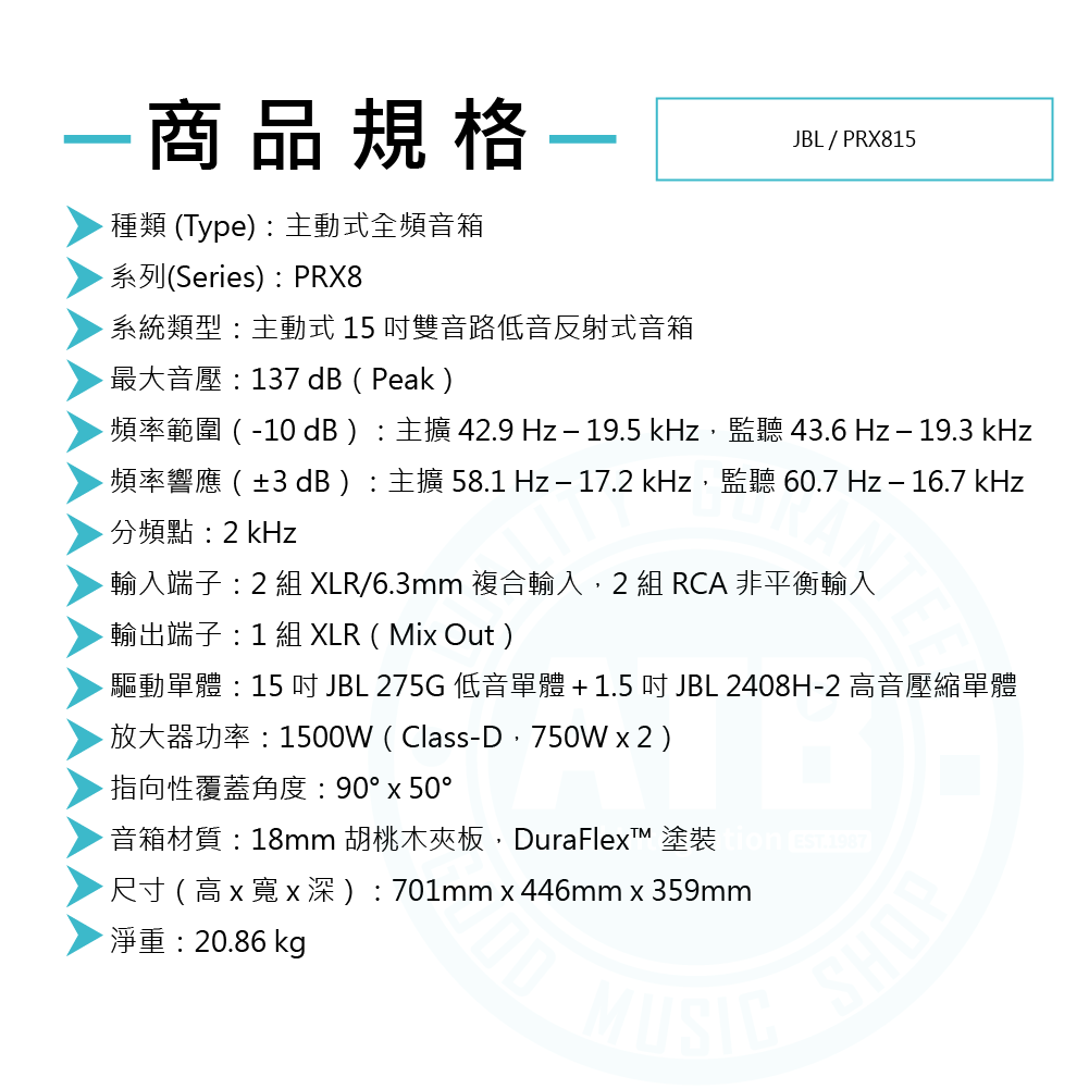 ◆ 最高1500W,最大15吋